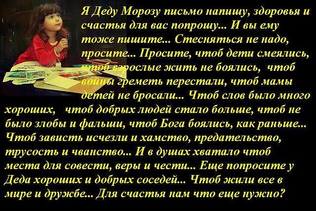 Все дети, будь то 3-х летний малыш или 16- летний подросток, в душе верят в исполнение желаний, в то, что в Новый Год Дедушка Мороз принесёт им именно тот подарок, который очень хочется.